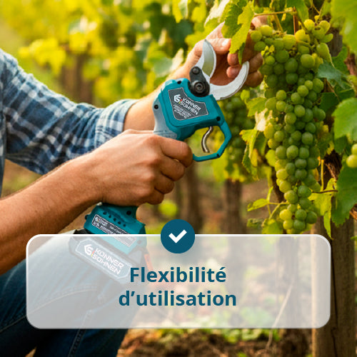 • Flexibilité de travail — deux largeurs d'ouverture des lames (20/40 mm) s'adaptent à différents diamètres de branches, économisant du temps et la batterie.