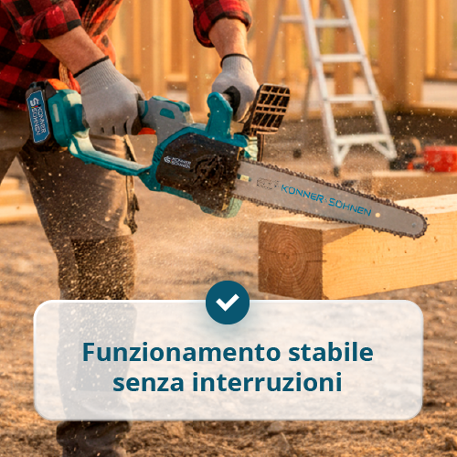 • Batteria da 4,0 Ah e caricabatterie da 4,5 A inclusi – garantiscono un funzionamento autonomo duraturo della motosega e consentono una ricarica rapida.