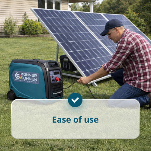 • Funzionamento automatico – in modalità AUTO, il generatore monitora indipendentemente la tensione della batteria, si avvia quando scende sotto i 50V e si ferma quando l'uscita raggiunge 54,5 ± 0,5 V e la corrente scende sotto i 20A.