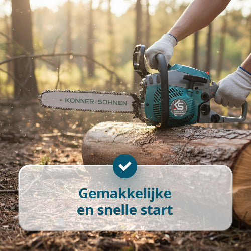 • Eenvoudig en snel starten – het systeem combineert een automatische STOP-knop, handmatige brandstofpomp (primer) en starter met een extra veer, waardoor de kettingzaag altijd klaar is voor gebruik.