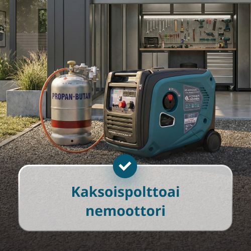 • Podržava dve vrste goriva (benzin/LPG) – Generator može raditi i na benzin i na LPG (propan, butan i njihove mešavine). Ovo omogućava prelazak na jeftiniji, dugotrajniji gas nakon pokretanja.